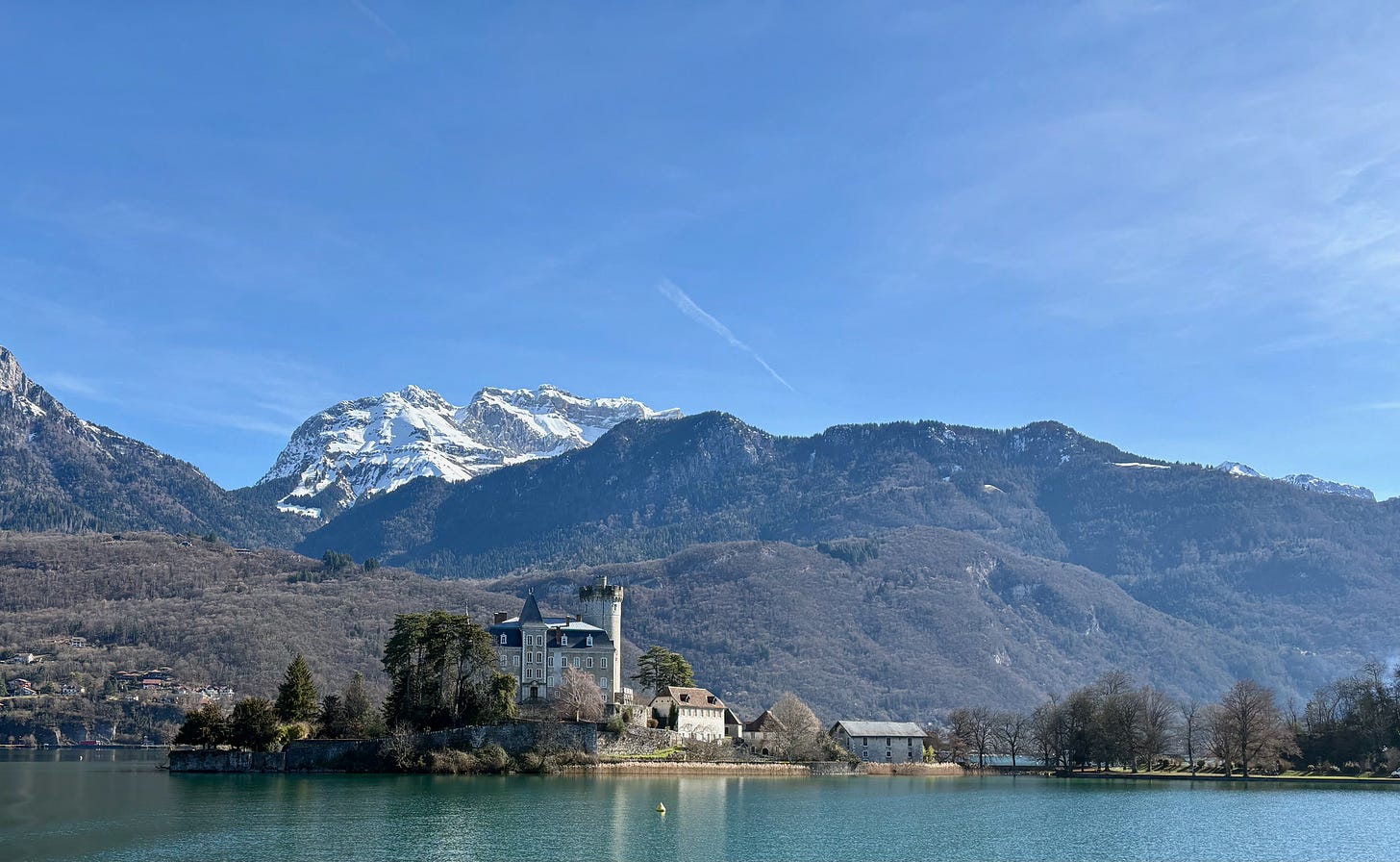 It was the end of a long, delightful day of touring the French countryside. We had started the day in Annecy, a resort village in the French Alps near the border with Italy—a few miles farther east of Annecy. Geneva, Switzerland was only thirty miles north. The Alpine mountain backdrop framing the photos of Lake Annecy looks just like the programming from the recently completed winter Olympics. The next winter Olympics will be held in this region of the French Alps.